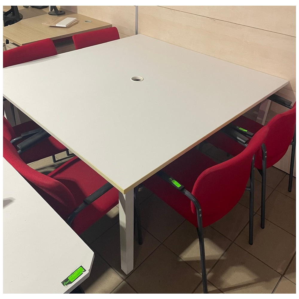 Stół konferencyjny BPFA-1 to funkcjonalny, stabilny i nowoczesny mebel przeznaczony do przestrzeni biurowych, sal spotkań oraz stref pracowniczych. Dzięki dużemu, kwadratowemu blatowi w kolorze białym zapewnia komfortową przestrzeń roboczą nawet dla czterech–sześciu osób. Minimalistyczna forma oraz jasna kolorystyka sprawiają, że model BPFA-1 sprawdza się w każdym wnętrzu, optycznie je rozjaśniając i nadając mu profesjonalnego charakteru.